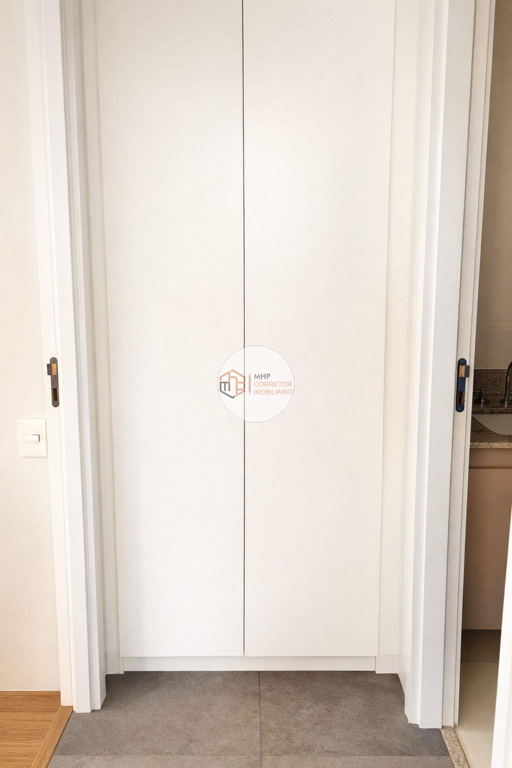 Os banheiros social e da suíte contam com armários planejados, garantindo praticidade e organização.