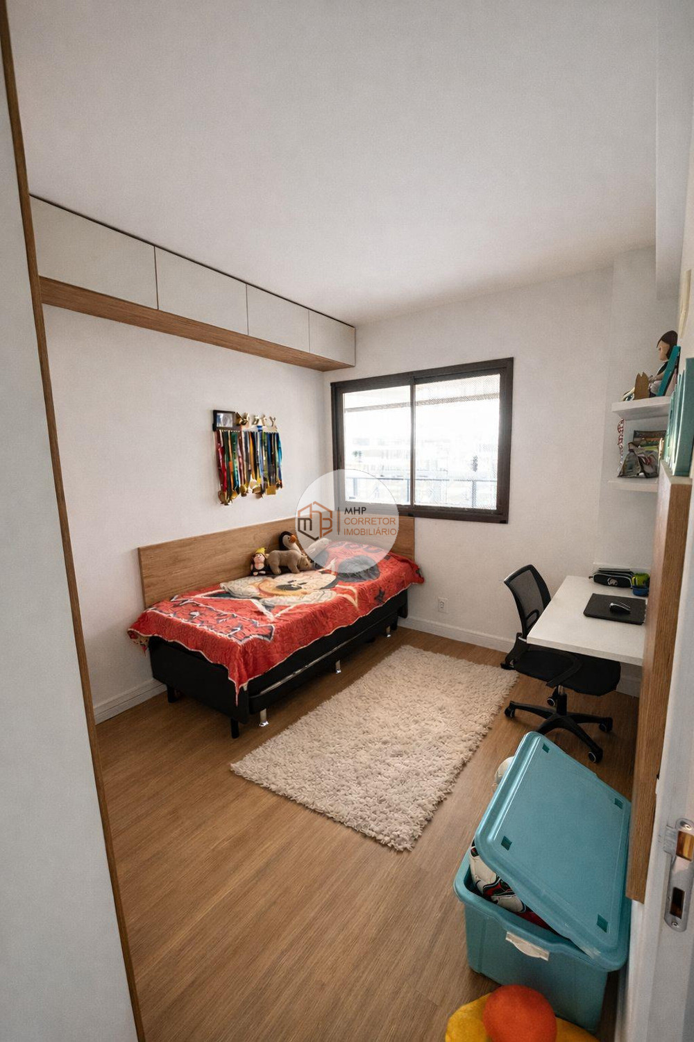Na área íntima, o apartamento dispõe de 4 quartos confortáveis, todos com armários e bancadas planejadas, além de armário no corredor, otimizando o espaço com inteligência.