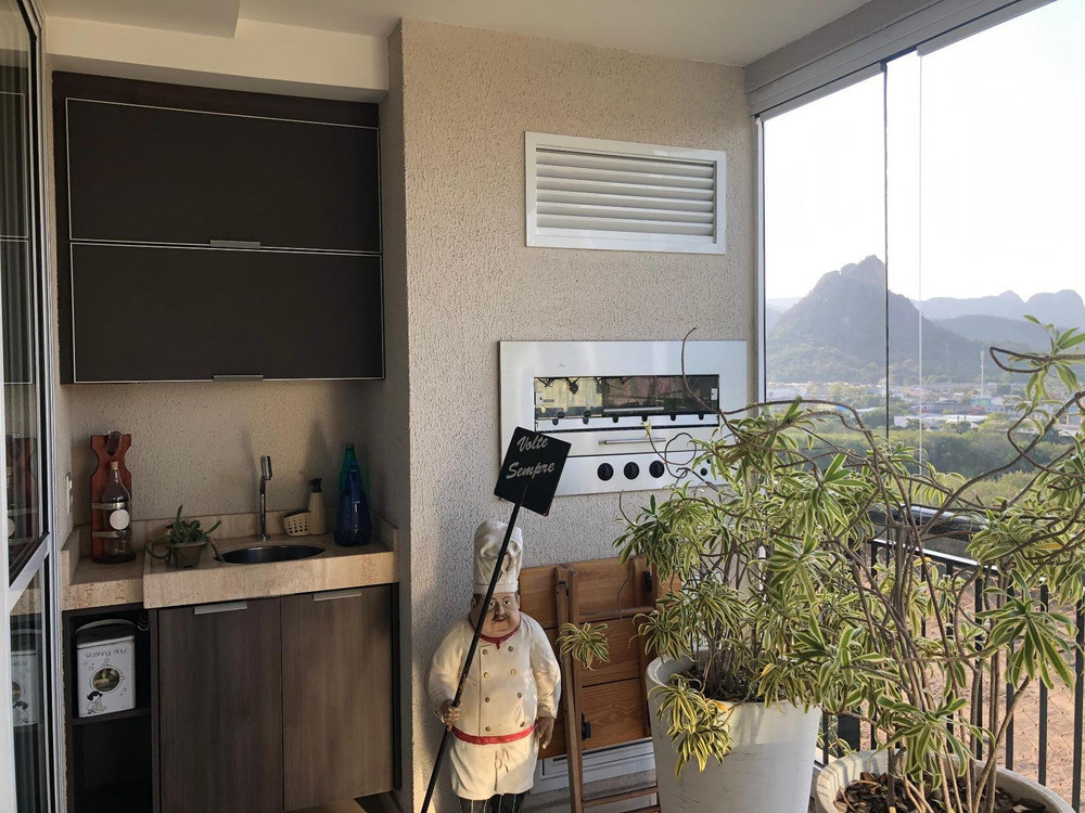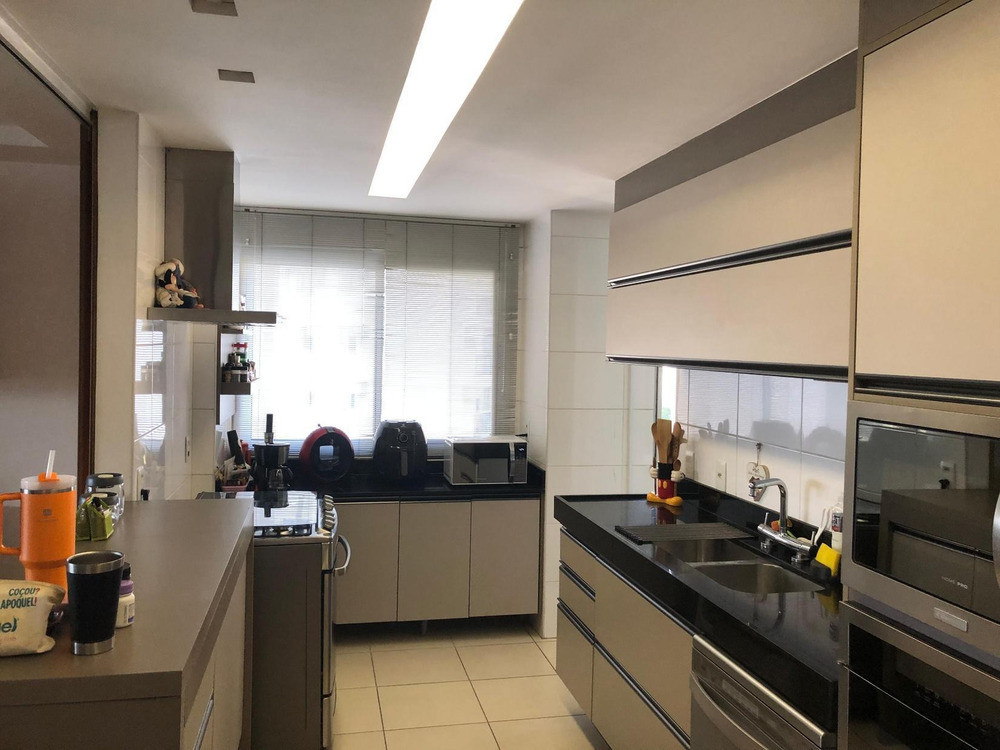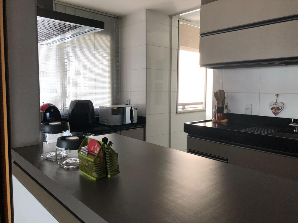 A cozinha é moderna e totalmente equipada, com móveis planejados, coifa e torre quente, além de área de serviço independente e dependência completa.