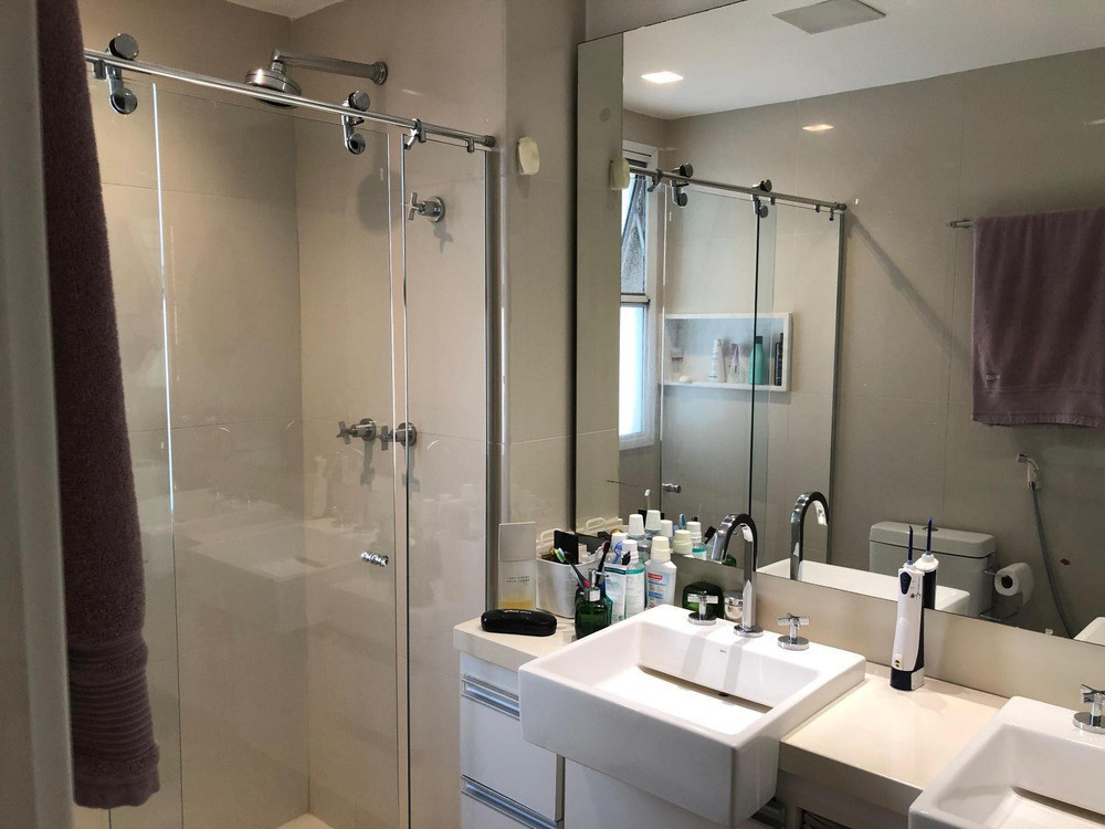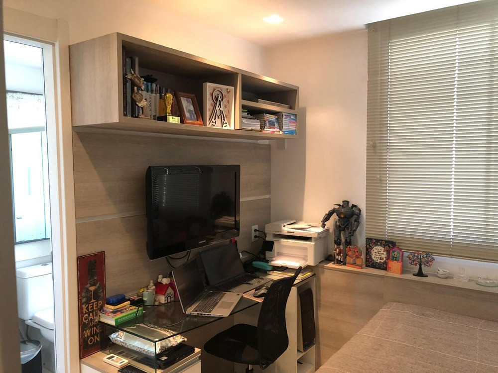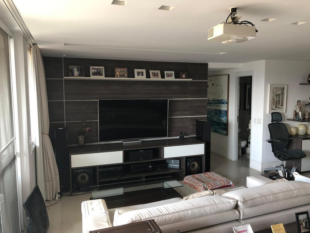 Todos os ambientes possuem armários planejados e ar-condicionado split, e o imóvel já conta com projetor e tela de vídeo instalados, agregando ainda mais exclusividade. Permanecem os móveis fixos, com possibilidade de negociação para outros itens.