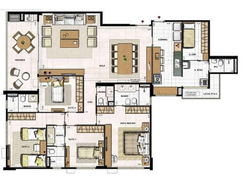 3 suítes (planta original 4 quartos)