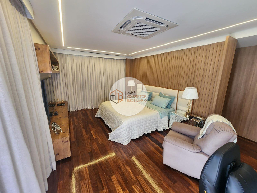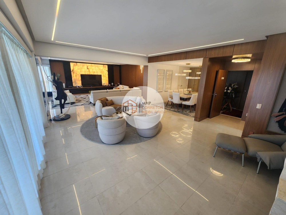- Sala em Múltiplos Ambientes: Ambientes amplos e integrados, com parede revestida em madeira e pedra ônix iluminada, piso em porcelanato, projeto de iluminação em LED, automação Alexa e ar-condicionado modelo K-7.