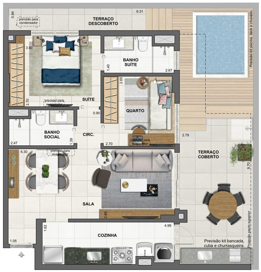 Infraestrutura com previsão para deck com piscina privativa